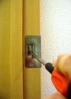A4.網戸側面の上部左右に、網戸外れ止めがネジで固定されています。そのネジをゆるめていただき、外れ止めを下げていただくと簡単に外すことができます。取り付けた後は、逆の工程で必ず外れ止めをロックしてください。