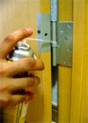 A3.ドアを開いてドア自体を軽く持ち上げると、丁番の軸棒が見えます。この軸棒にシリコンスプレーを吹き付けると、音が解消されます。