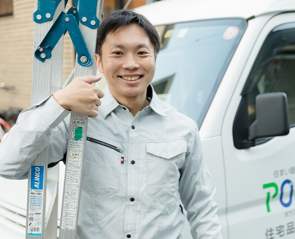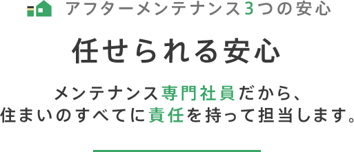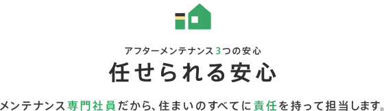 定期点検を業者に委託するメーカーが多いなか、私たちは社内認定を受けた専門社員が、お客様宅のカルテに基づいて定期訪問。窓鍵の調整、壁紙の剥がれなどの簡単な修理であれば、その場で対応できるようにしています。私たちが建てた家だからこそ、本当に必要なサポートを100%理解しています。無駄な修復を提案することもありません。これは、委託業者ではできない、私たち専門社員だからこそできるサービスです。