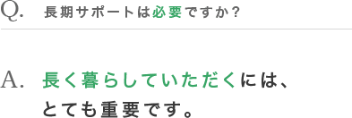 完全に壊れてから、メンテナンスすると費用面だけみても非常に大変なんですね。実際に、お客様が大変な思いをされているのをたくさん見てきました。点検では6割〜8割くらいの傷みの段階で発見することができるので、費用も抑えつつ経済的にメンテナンスが可能です。私が思うに、家は人がきちんと住んでいて、ちゃんとメンテナンスさえしていれば、35年しっかりと持ちます。長期的に暮らすのであれば、メンテナンスは必須です。長く暮らしていくと家族構成も変化します。例えば、息子さんや娘さんに引き継げるように、家をメンテナンスしていくのも大事だと思います。