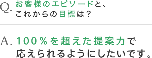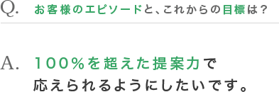いろいろとエピソードはあるのですが、お客様に「今すぐ来て欲しい」と言われて、お伺いしたんですね。何か不具合かと思ってドキドキして向かったら、お宅で収穫したみかんを「いつもありがとう」といただきました。本当に嬉しかったです。今だと、お客様のご要望に対して100%応えるだけで精一杯のケースが多いのですが、120%、130%ともっと多くのものを返せるように、提案力をつけ、学んでいきたいです。