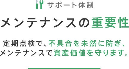 不具合は、発生する前に対処することが重要です。最悪の場合、大きな事故につながることもあります。発生してからでは、費用も多くかかります。定期的に点検を行うことで、不具合が起こる前に発見できます。早期対処により費用を軽減し、家計の負担も減らせます。