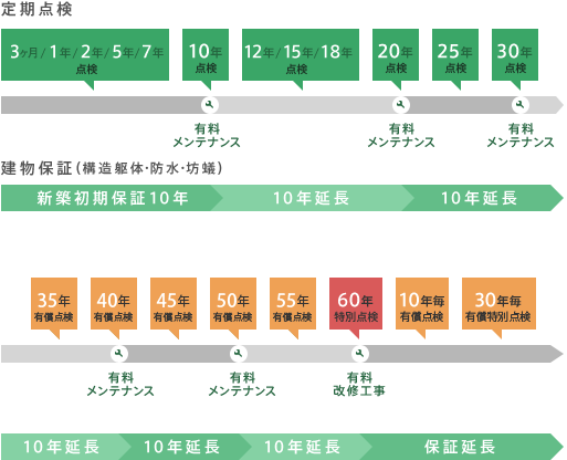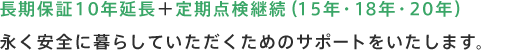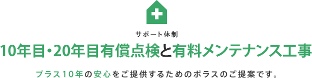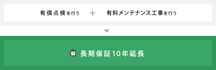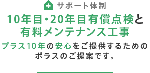 保証延長工事により、プラス10年長期保証が延長されるだけでなく、無料定期点検も実施します。責任をもって暮らしのサポートをさせていただきます。