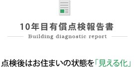 点検の結果を4段階の評価基準に基づいて各部位ごとに評価し、状況写真とともに「10年目有償点検報告書」としてご提出いたします。この報告書を基に、お客様に必要なメンテナンス工事をご提案させていただきます。