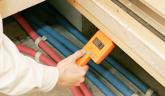 構造材に含まれている水分を測定する計測器です。床下3ヶ所を測定し、水分が適切に保たれているか確認いたします。 |
