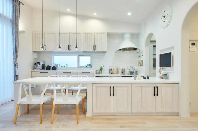 このようにキッチンの真横にダイニングテーブルを置いてあげると、さらに料理の提供もしやすく、ちょっとしたホームパーティーのような雰囲気を出すことも出来ます。