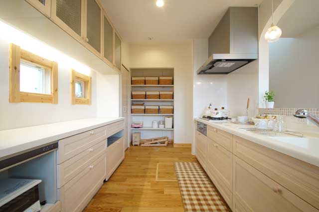 最近はキッチンの横に「パントリー(棚)」を設ける方が多くなっています。