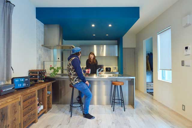 すこしキッチンのスペースを広げてあげると、バーカウンターのような空間にも。