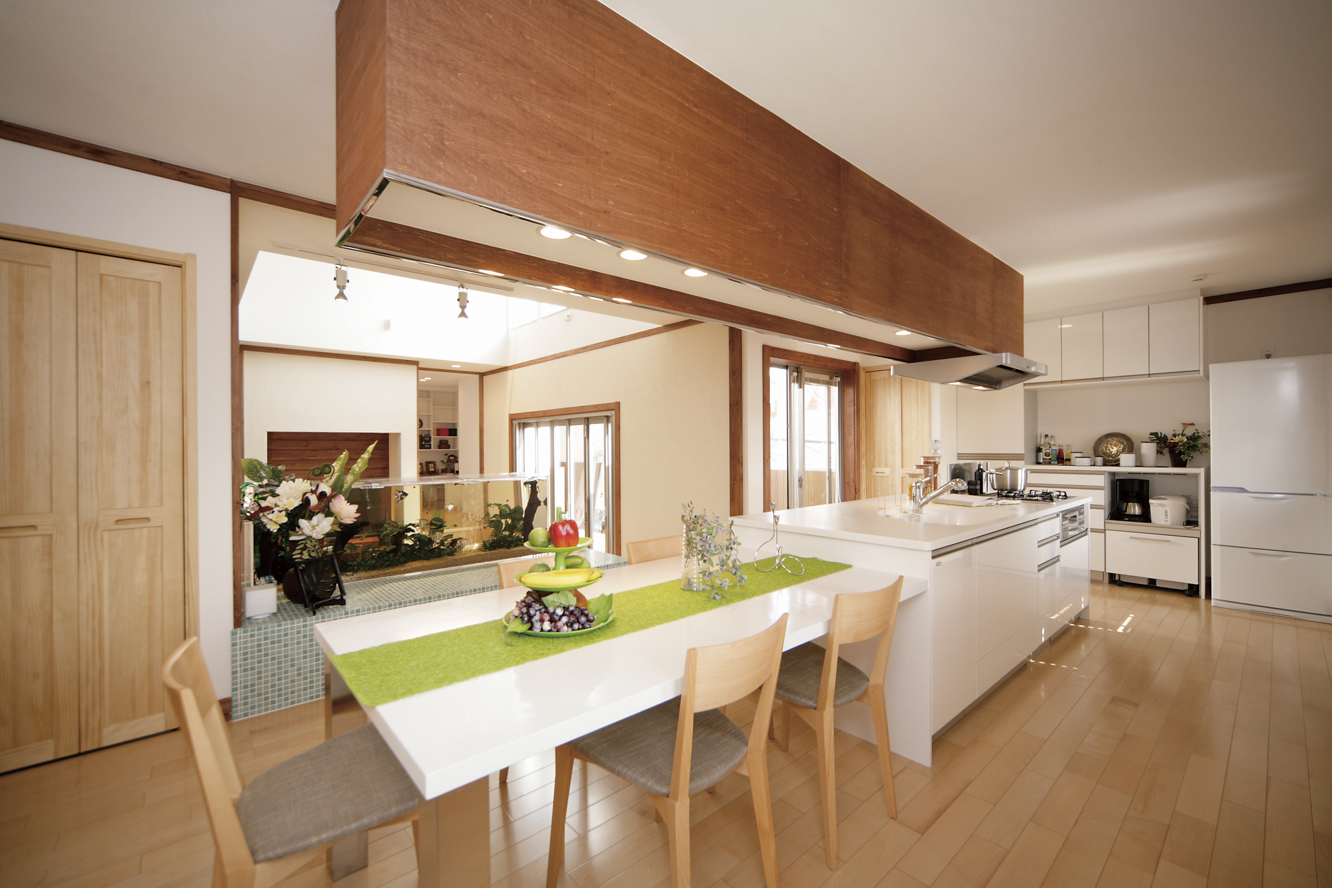 どこからでもキッチンに入ることが出来ますので、家事動線がすっきりし、お忙しい奥様の時短にも役立つかもしれません。