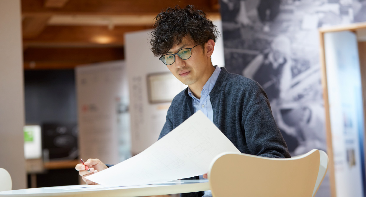 大学で意匠設計を学んだことをきっかけに持つようになったのは、自分で設計するなら、工程のすべてに関わることができる住宅を手掛けたいという思い。そこで就職活動では、ハウスメーカーの設計者を志望するとともに、住宅設計であれば、設計の自由度が高い木造軸組工法の会社に就職したいと考えた。数ある木造ハウスメーカーの中でも、ポラスグループが展開する注文住宅ブランド「PO HAUS」のデザインに惹きつけられ、入社を決意。現場監督、営業等を経験し、現職に至る。