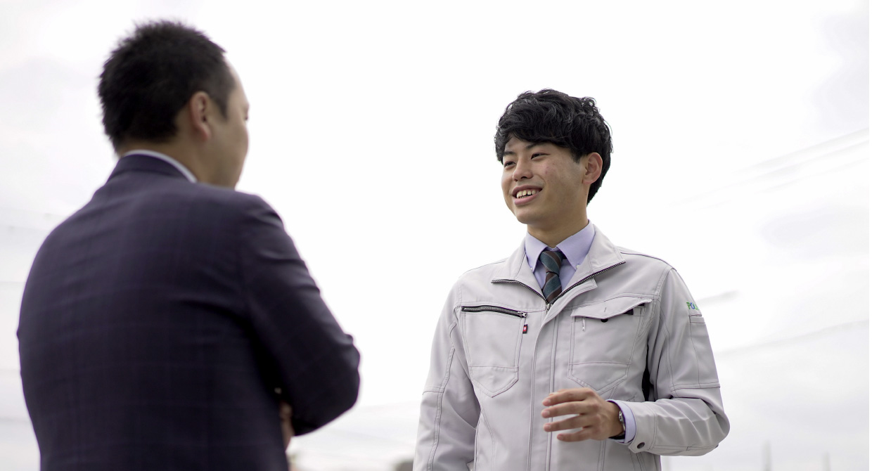 大学で学んでいたのは、RC(鉄筋コンクリート)造の構造。そのため、就職活動当初はRC造を得意とするゼネコンへの就職を希望していたが、広く建設業界を見ていく中で、ポラスグループの「一貫施工体制」の言葉に出会い、その家づくりに対する姿勢に共感。さらに、説明会で温かく迎え入れてくれた社員の人柄の良さに惹かれ、入社を決意した。入社後、現在に至るまで施工管理を担当している。