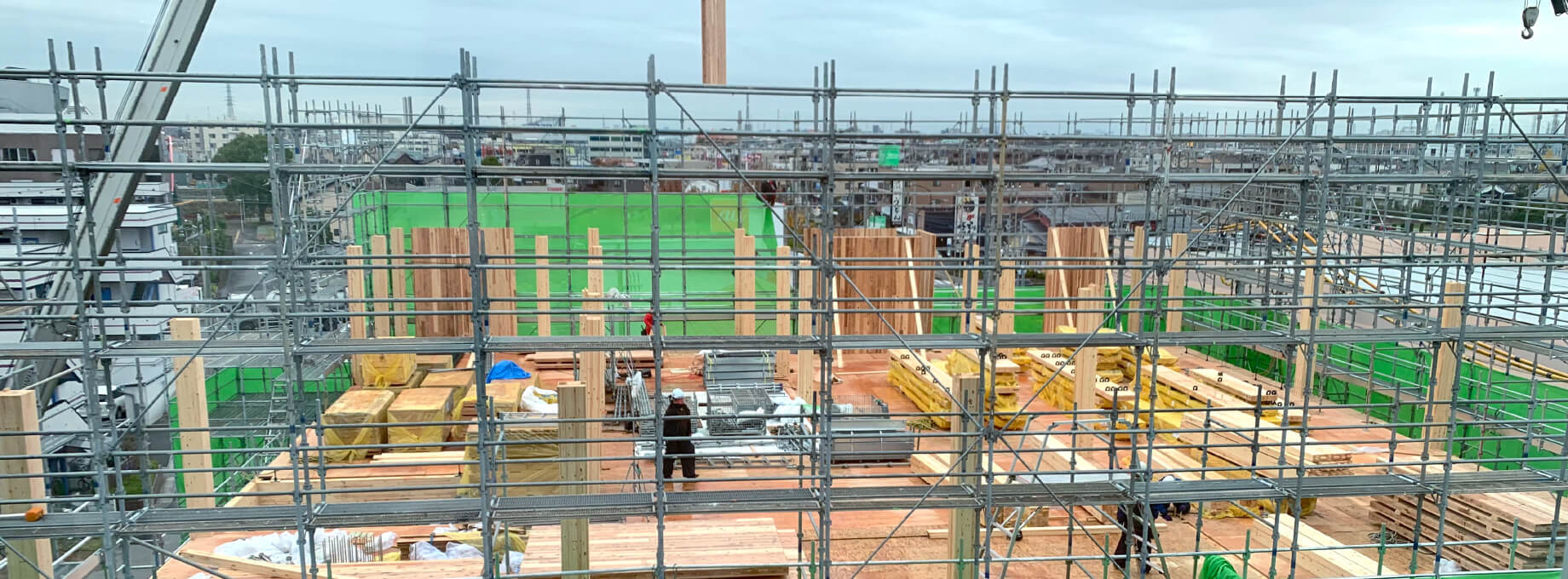 「多層階としては、グループとして手掛ける最大級の建築物であり、施工知識としては木造住宅よりも鉄骨造の知見が必要とされる構造方式。これまで保育園等の木造施設物件の経験はあったものの、未知の工法・規模の建物をつくることにワクワクしたのを覚えています。木造住宅の場合、長年培ってきたノウハウや標準化された手順があるため、現場を管理することに困難さはさほどありません。しかし今回は、多層階建築であるとともに、工法を熟知している人が誰もいない状態。非住宅ならではのつくり方を、現場監督である私はもちろん、普段住宅を手掛けている大工の方々も手探りで構築していく必要がありました。」(川上)