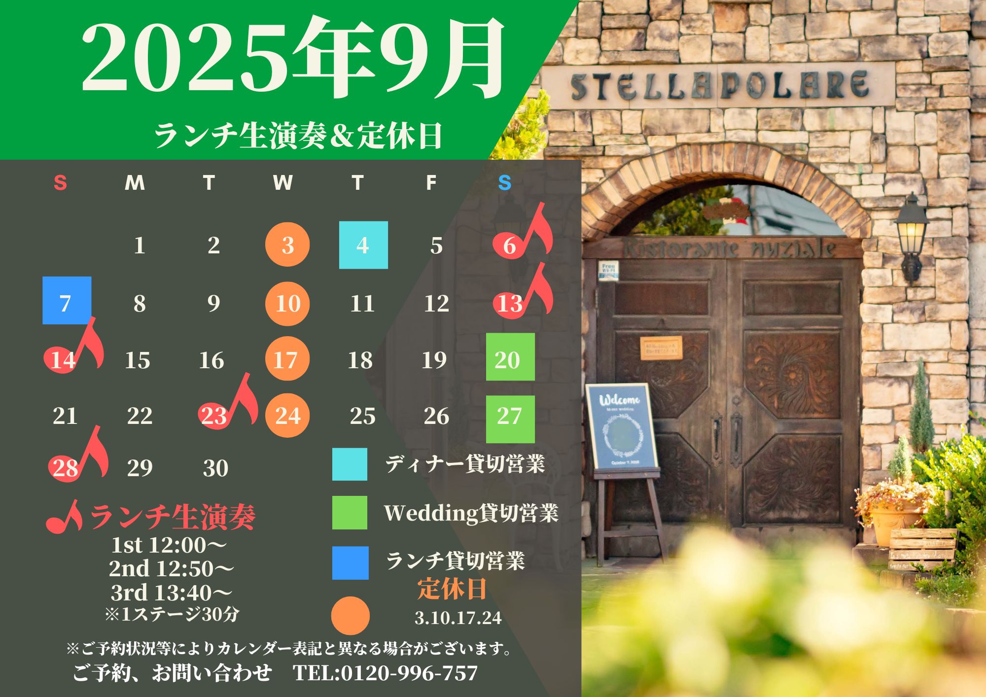 9月の休業日とランチピアノ演奏のお知らせ NEW