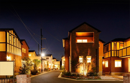 街全体の防犯性を高めるだけでなく、夜でも街全体を明るく照らすことにより、美しい光が外観を彩り、個性豊かな街並みを演出。ご入居者様からも高い評価を得ています。